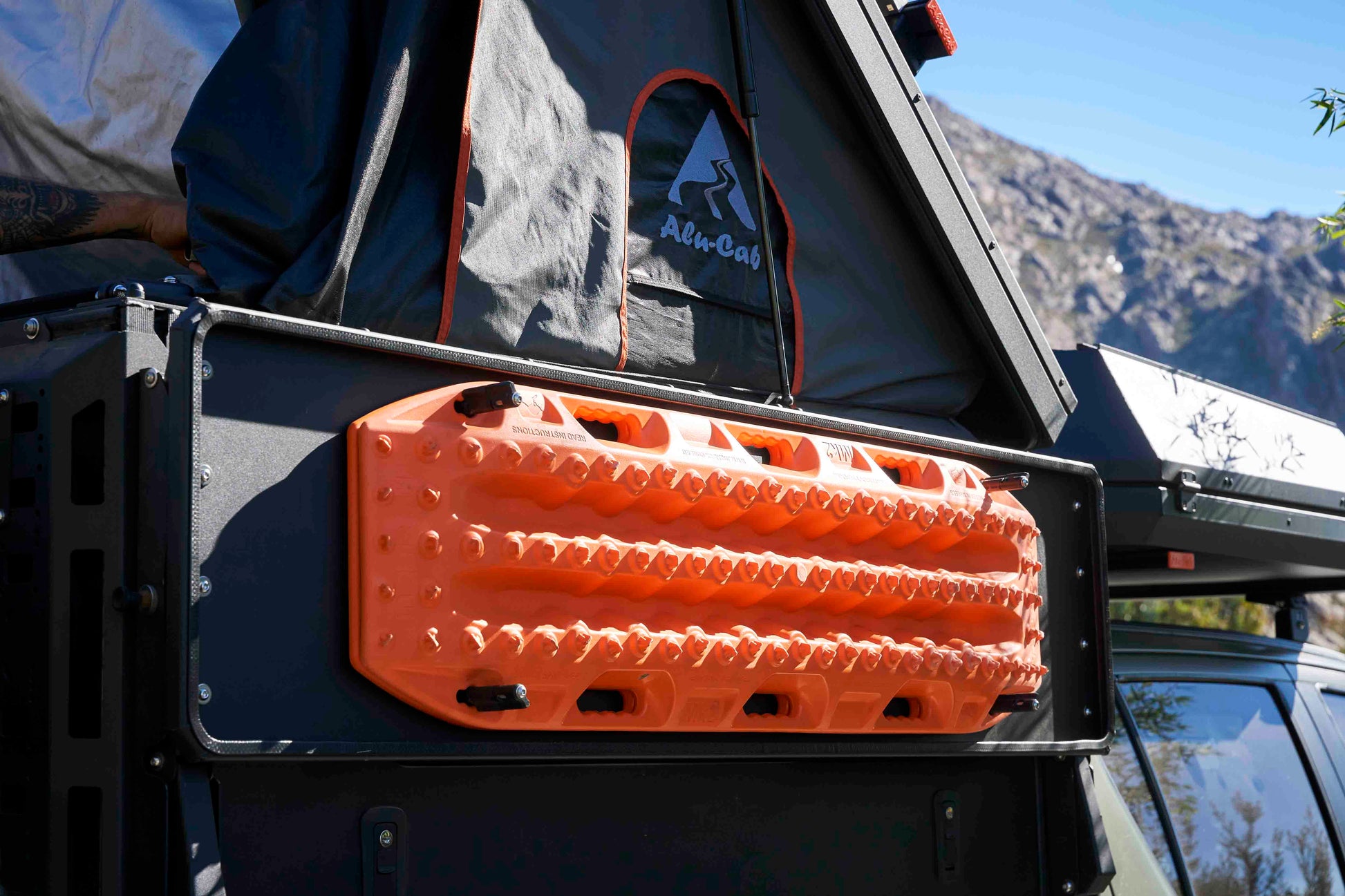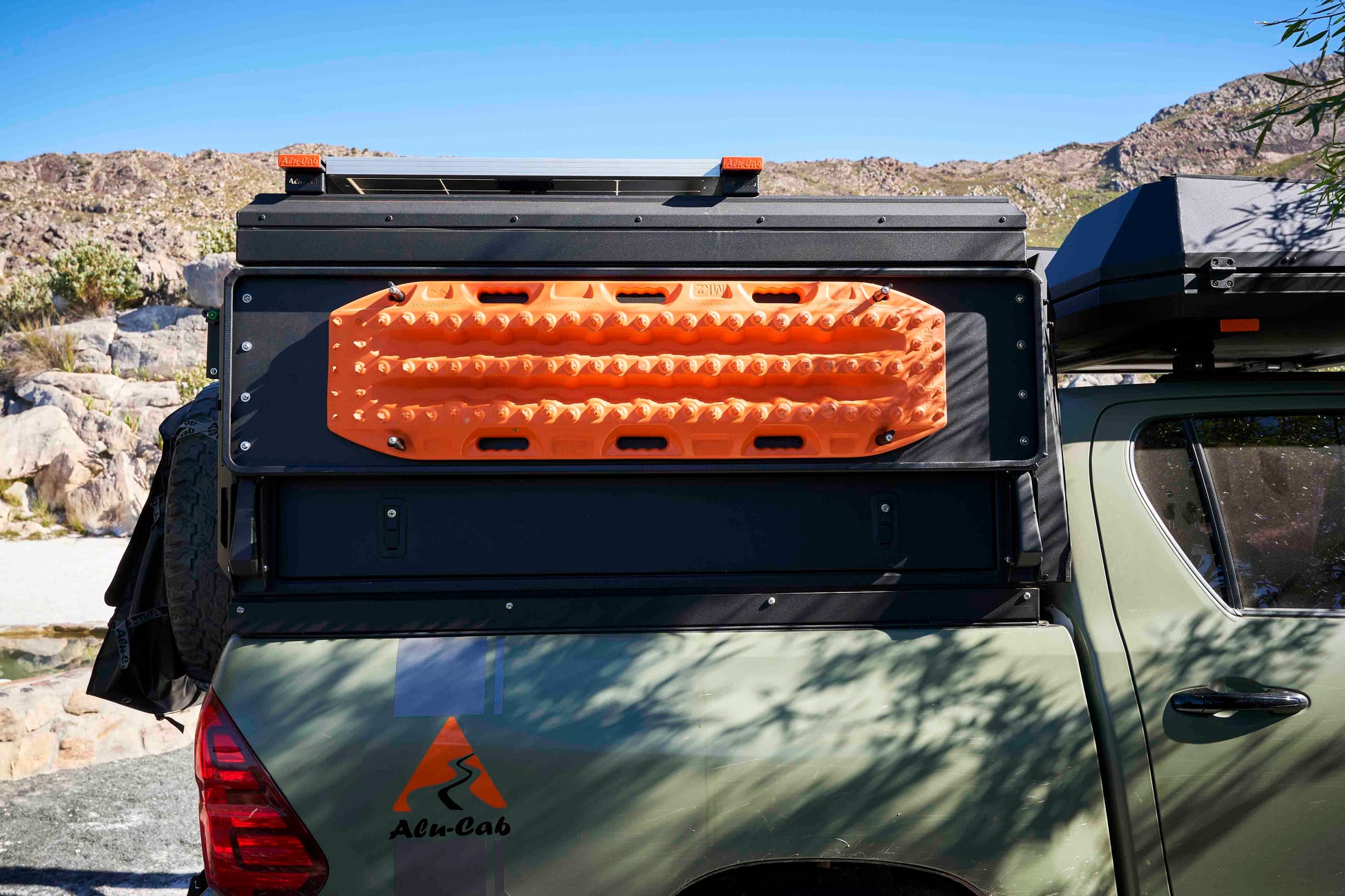 Der Alu-Cab Drop Down Tisch ist die ideale Ergänzung für alle Offroad- und Overland-Abenteuer. Entwickelt für den Einsatz am Alu-Cab ModCAP und Canopy Camper, lässt sich der klappbare Beistelltisch direkt in das C-Schienen-System des ModCAPs integrieren. Mit nur wenigen Handgriffen entsteht eine stabile Arbeitsfläche, die gleichzeitig als praktische Halterung für Sandbleche dient. Das durchdachte Design sorgt dafür, dass deine Bergebretter sicher verstaut und jederzeit griffbereit sind, während zusätzlicher Stauraum für Outdoor-Küche, Werkzeug oder weiteres Campingzubehör geschaffen wird. Gefertigt aus hochwertigem, schwarz pulverbeschichtetem Aluminium, ist der Tisch besonders robust, witterungsbeständig und für den dauerhaften Einsatz unter anspruchsvollen Bedingungen ausgelegt. Ob als Outdoor-Küchentisch beim Campen, als Ablagefläche bei Reparaturen oder als erweiterte Arbeitsfläche am Fahrzeug. Der Tisch hat eine Maximalbelastung von 10kg und eine Arbeitsfläche von 0,546m².